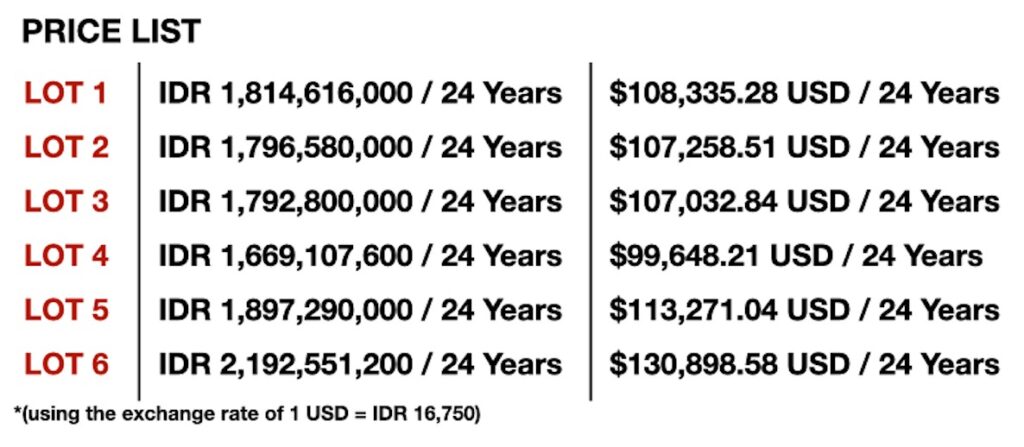Secure a rare piece of land in one of Bingin's most sought-after locations. These exclusive parcels are perfectly suited for a private villa, boutique development, or high-performing rental property generating steady passive income. Each plot comes with a 24-year leasehold plus a 20-year extension option, providing long-term security in this high-demand coastal market.